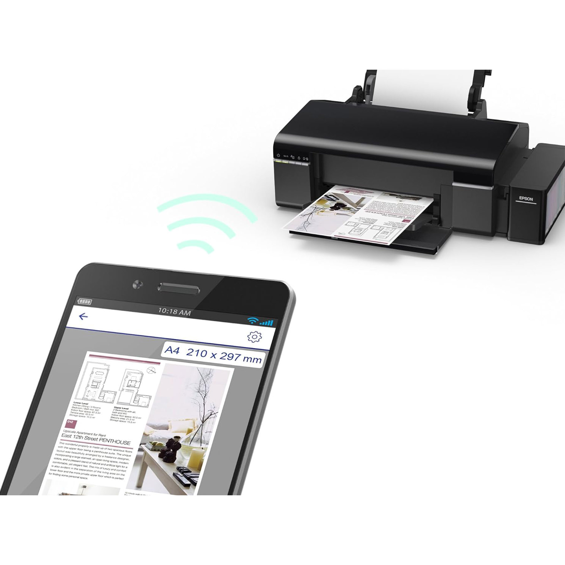 پرینترهای جوهرافشان یکی از دستگاههای لازم در ادارات و کاربردهای خانگی هستند و استفادههای گوناگونی از آنها میشود. پرینتر «L805» از شرکت «اپسون» (Epson) در ابعاد 187×289×547 میلیمتر و وزن 6 کیلوگرم عرضه میشود. چاپ به صورت جوهرافشان و رنگی در وضوح 5706×1440 dpi با استفاده از 90 نازل مشکی و 90 نازل رنگی انجام میشود. میتوانید 5 برگ در دقیقه را به صورت رنگی یا سیاه و سفید چاپ کنید. برای چاپ عکس در اندازهی 10×15، حدود 12 ثانیه زمان لازم است. این پرینتر از کاغذهایی با اندازههای A4، A5، A6، B5، C6 (Envelope)، DL (Envelope)، No 10 (Envelope)، 10×15، 13×18 و Legal پشتیبانی میکند؛ همچنین قابلیت چاپ روی «CD» را دارد. چاپ دورو به صورت دستی انجام میشود. ظرفیت سینی کاغذ 120 برگ کاغذ استاندارد و 20 برگ Photo Paper است. ظرفیت سینی خروجی 50 برگ است. چاپگر از طریق درگاه USB به یارانه وصل شده و با برق شهری تغذیه میشود. برق مصرفی دستگاه در حالت چاپ برابر با 13 وات و در حالت Sleep Mode برابر با 1.2 وات است. این چاپگر به مخزن جوهر مجهز است و میتوانید با استفاده از بستهی جوهر T6736، تانکر جوهر را پر کنید.